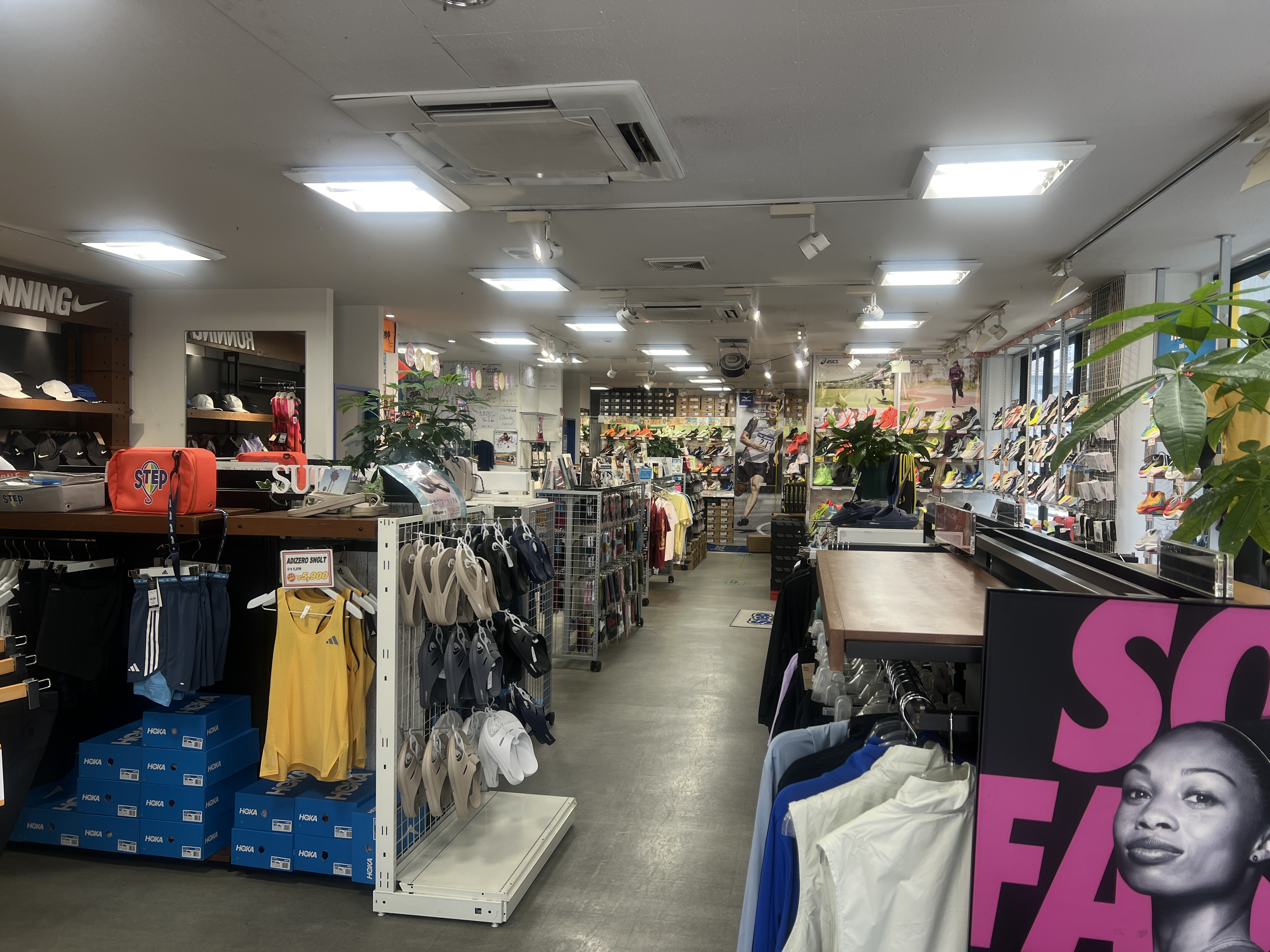 お客様各位 平素よりステップスポーツ熊本店を ご愛顧いただき、誠にありがとうございます! ステップスポーツ熊本店は 熊本唯一の『陸上競技・ランニング専門店』です!! 熊本県で1番のランニングシューズ、マラソンシューズ・陸上スパイクを1,000足以上取り揃えております! その他、ランニングウォッチ、ウェア、小物等、マラソン用エネルギーサプリも充実です。 ここでしか購入できない「限定商品」も 取り扱いございます! ○商品の質問や購入相談はお電話でも受け付けております。お気軽にお電話ください。 ○ご来店することが出来ず、お電話にて購入依頼があれば代引き郵送も可能です。お気軽に申し付けください。